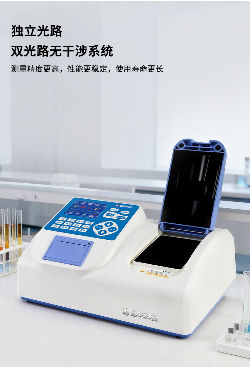 簡要描述: 儀器依據《水質化學需氧量的測定快速消解分光光度法(HJ/T399-2007)》標準設計,采用雙光路無干涉系統,可以測定COD高量程、COD低量程水樣,同時支持皿比色與管比色兩種比色方式,便于用戶選擇合適的耗材進行實驗,具有極高的便利性和性價比。